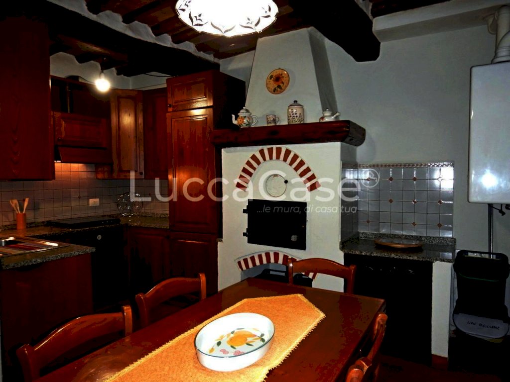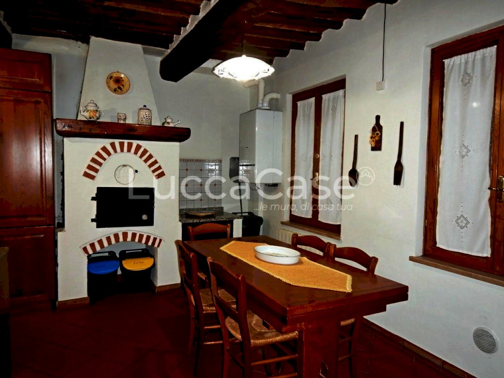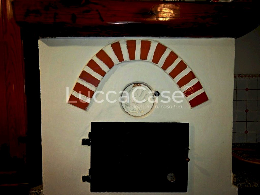 A sinistra della porta di ingresso troviamo una cucina abitabile a forma di “L” con due finestre che si affacciano su una piccolissima corte interna e corredata da un forno a legna per infornare gustose pizze.