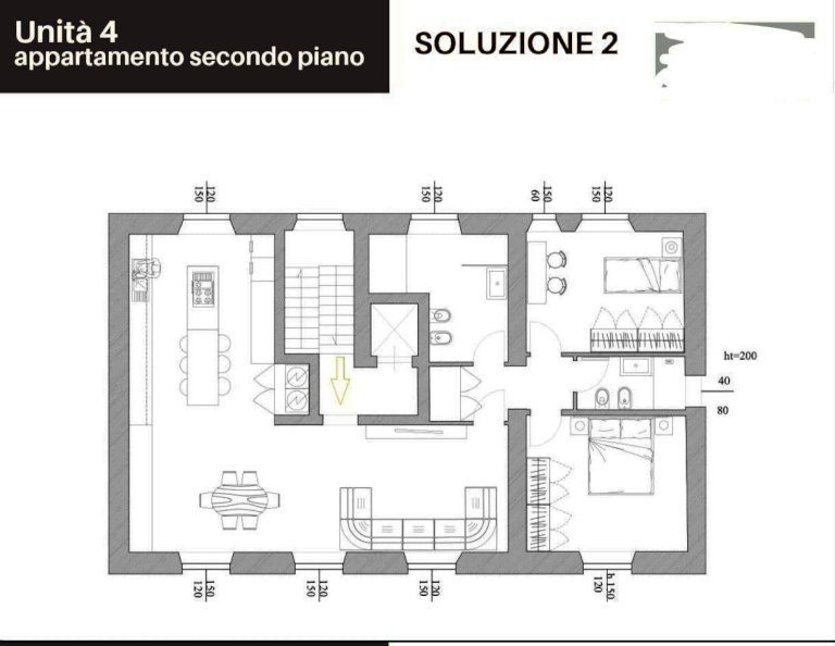 A pochi minuti dal centro di Lucca, in una tranquilla strada secondaria della zona Nord, proponiamo luminosissimo appartamento di nuova e completa ristrutturazione di circa 140 mq, posto al secondo e ultimo piano con ascensore, all’interno di un elegante fabbricato di sole 4 unità, con scala privata che serve soltanto due appartamenti. L’immobile si compone di ampio soggiorno, cucina abitabile, due camere da letto e possibilità di realizzare due bagni. Le grandi finestre e i soffitti alti con travi in legno a vista donano agli ambienti grande luminosità e un’atmosfera calda e accogliente. Il riscaldamento a pavimento garantisce comfort ottimale in ogni stagione. È inoltre prevista la possibilità di realizzare una terrazza a vasca, ideale per momenti di relax all’aperto. Completano la proprietà due posti auto esclusivi. Le finiture previste sono di ottimo livello, con capitolato di alta qualità; in questa fase è ancora possibile personalizzare completamente gli spazi e le finiture in base alle proprie esigenze e al proprio gusto. LE IMMAGINI SONO PURAMENTE ESEMPLIFICATIVE. Classe energetica A. Consegna prevista per la primavera 2026. L’indirizzo indicato nell’annuncio è approssimativo; per maggiori informazioni contattateci telefonicamente o via email. Riferimento A147