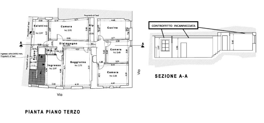 L' appartamento ha controsoffitti con incannicciata , ad oggi é sprovvisto di riscaldamento, gli infissi sono nuovi con doppio vetro.Costi ristrutturazione completa preventivati circa 150/160 000€