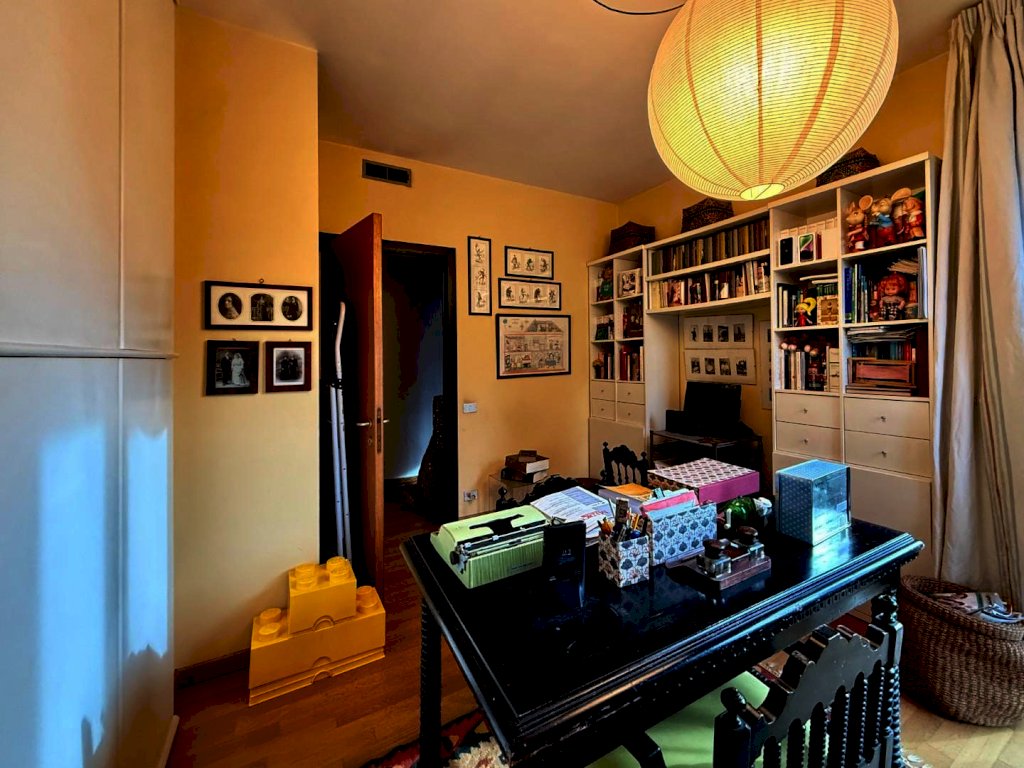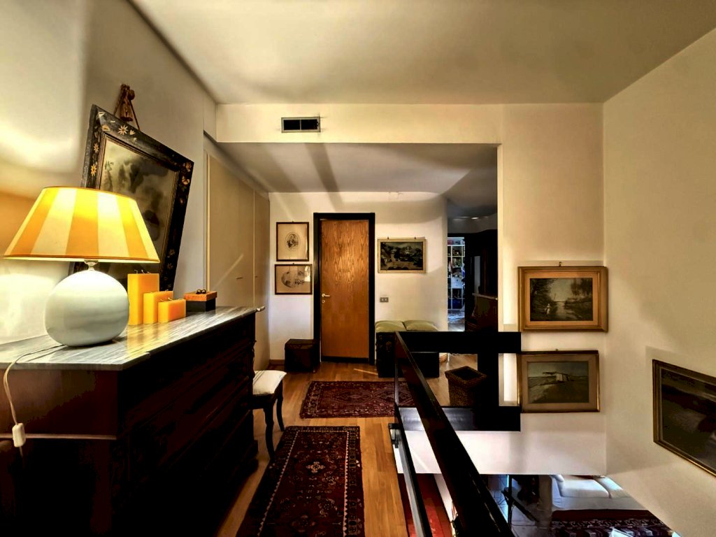 Salendo al livello superiore, collegato da una comoda ed elegante scala a vista – ma raggiungibile anche tramite un secondo ingresso indipendente servito da ascensore – si sviluppa la zona notte, dove troviamo quattro camere, una delle quali arricchita da un proprio balcone, oltre a due bagni che garantiscono comfort e funzionalità.
