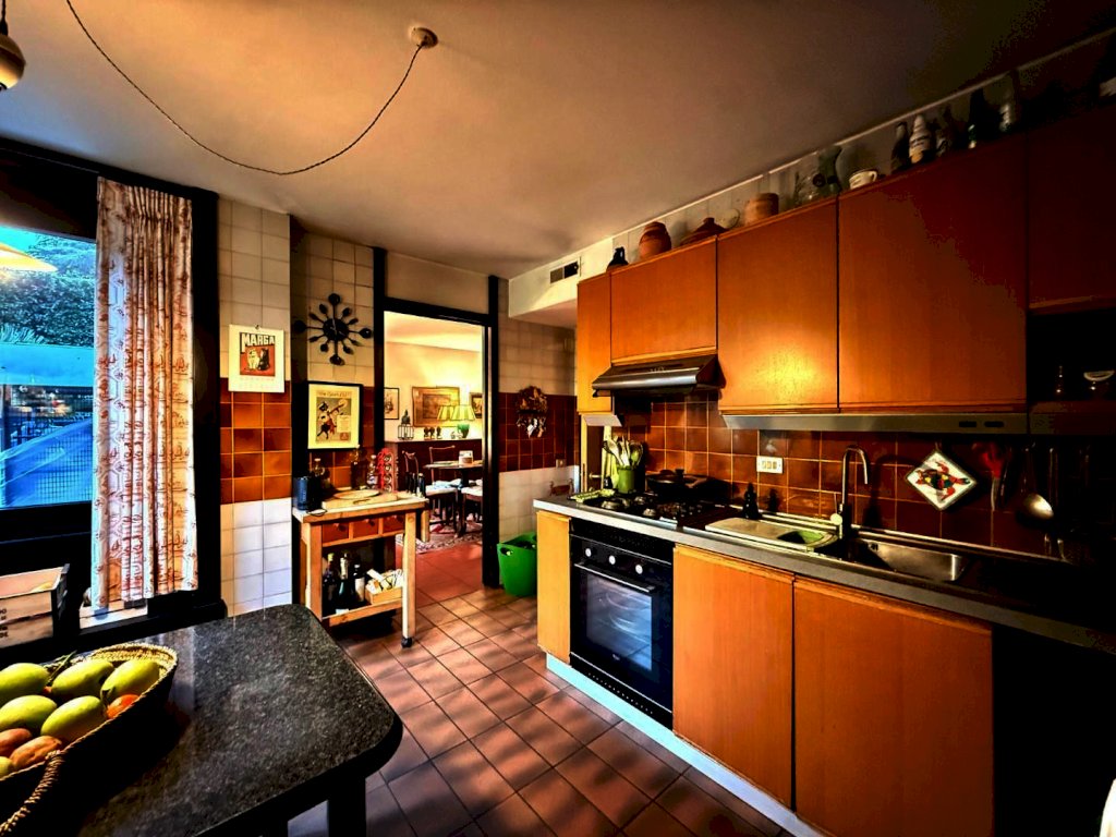 L’edificio, oggetto di una recente e completa riqualificazione energetica, offre oggi standard abitativi elevati: infissi di ultima generazione Schüco a taglio termico e finitura specchiata, cappotto termico, impianti fotovoltaico e pannelli solari condominiali, caldaia centralizzata nuova ad alta efficienza, ascensore nuovo, servoscala per disabili, sistema di videosorveglianza e un curatissimo giardino condominiale che circonda armoniosamente l’edificio. Il servizio di portineria, presente per mezza giornata, contribuisce a rendere il contesto ancora più esclusivo e ben gestito. Spese condominiali di circa 200 euro mensili.