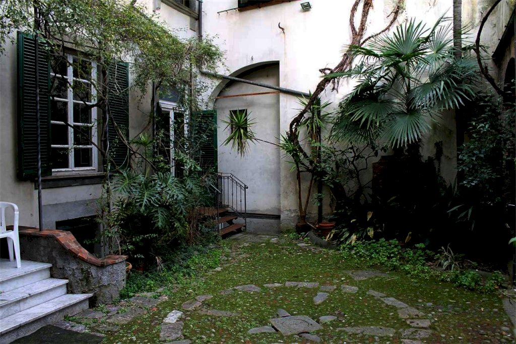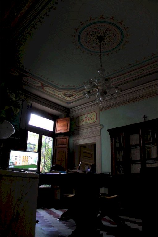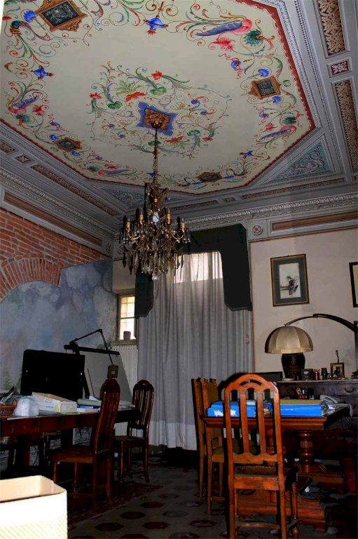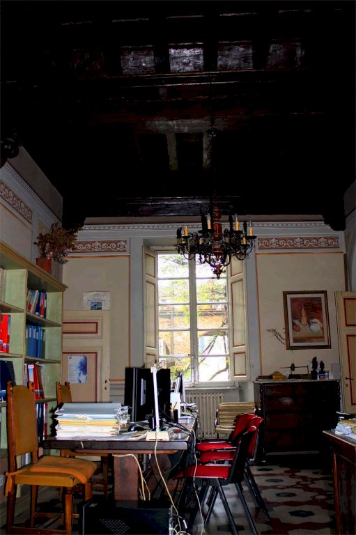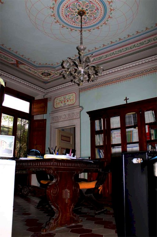 L'appartamento è composto da: ingresso fronte piazza con accesso dal giardino esclusivo e da un grande cancello in ferro da poter utilizzare o come giardino o come parcheggio interno, , l'appartamento si compone da ingresso, due ampie sale comunicanti, una sala con caminetto in marmo, due locali con accesso laterale, tre bagni, tre canne fumarie, soffitti a cassettoni in legno completamente restaurati, pavimenti Tessieri, pareti elegantemente affrescate.
