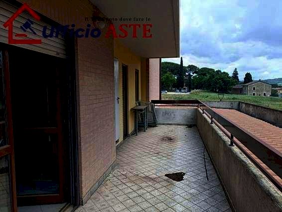 Diritti di piena proprietà esclusiva su appartamento posto al primo piano di un fabbricato condominiale plurifamiliare sito in Magione (PG), Via del Risorgimento n. 55. L'accesso all'immobile avviene dal disimpegno della scala comune, ove è presente anche un ascensore per tutti i livelli. L'appartamento è formato da soggiorno-cucina, n. 3 camere, n. 2 bagno, disimpegno e n. 2 terrazzi. Diritti di piena proprietà di Garage di pertinenza posto al piano primo sotto strada dello stesso immobile.