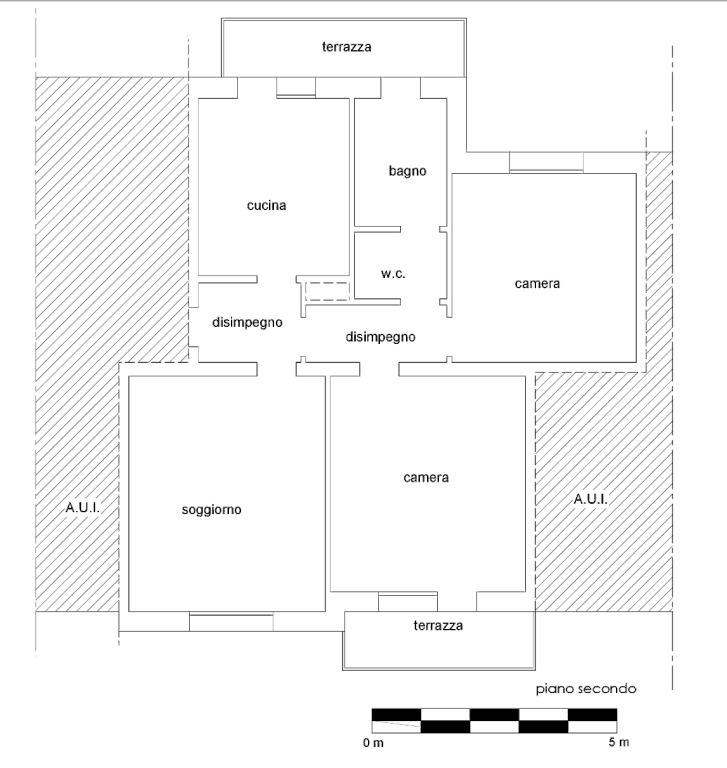 Appartamento al piano secondo con cantina ed autorimessa al piano interrato facente parte di fabbricato condominiale su tre piani fuori terra ed uno interrato situato a Malo (VI) in via Clementi. Abitazione si compone di ingresso, una cucina, un soggiorno, bagno, due camere da letto e due terrazzi.