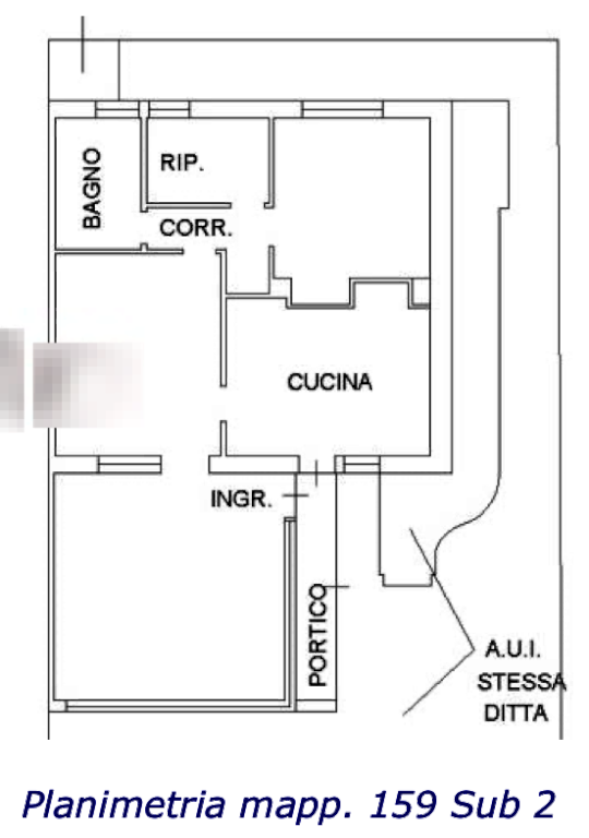 cucina, un disimpegno con una camera da letto, un ripostiglio ed un servizio igienico.