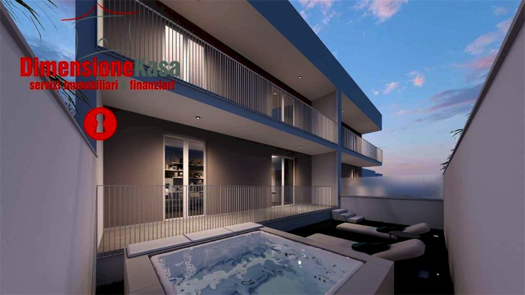 Le soluzioni, curate nei minimi dettagli, presentano una distribuzione interna razionale e contemporanea di circa 95mq totali interni oltre a spazio esterno attrezzato con Piscina privata Jacuzzi 6 posti: