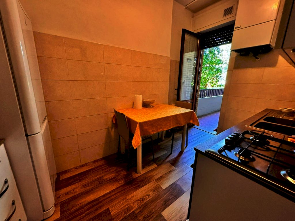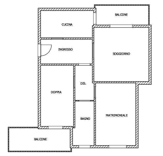 L'appartamento, in buone condizioni di manutenzione, è composto al suo interno da ingresso su disimpegno, cucina con balcone, soggiorno ampio, camera matrimoniale, camera doppia e bagno.