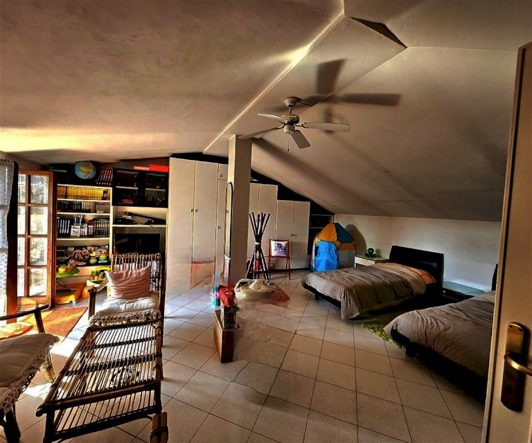 La grande balconata perimetrale con vista sulle Alpi rappresentano il luogo perfetto per godere delle giornate di sole. Al piano superiore la mansarda offre un ampio vano open space ove poter realizzare la quarta camera da letto, un bagno aggiuntivo e un ripostiglio. Completano la proprietà una spaziosa cantina e due posti auto, essenziali per la vita moderna.