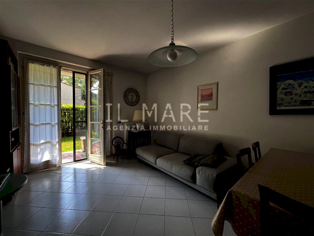 Ronchi: a solo 100 mt. dal mare, in piacevole contesto condominiale dei primi anni 2000, disponibile alla vendita appartamento al piano terra con ampio giardino privato. Si compone di soggiorno con angolo cottura, due camere da letto, bagno finestrato con doccia. Tramite scala interna si accede a taverna composta da due locali, bagno e ripostiglio. Ampio giardino angolare dove รจ possibile parcheggiare due auto.