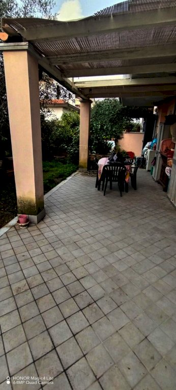 Appartamento in Vendita a Marina di MASSA, a soli 700 metri dal mare. Si trova all'interno di un piccolo condominio di recente costruzione. L'immobile è situato al piano terra ed ha una superficie di 105 mq, disposta su un unico e comodo livello. Le finiture interne sono di buona qualità. L'appartamento è dotato di due aree esterne distinte: una sul fronte della casa, piastrellata e di circa 40 mq, utilizzabile come posto auto e corte; l'altra sul retro, accessibile da appuntamento, parzialmente piastrellata con pergolato e parzialmente giardino di 60 mq. Internamente, l'appartamento è suddiviso in un ampio soggiorno con camino, una zona cucina abitabile a vista, un disimpegno notte, due camere matrimoniali, un bagno. Dal soggiorno si accede ad un'altra camera matrimoniale, uno studio e un bagno di servizio. L'appartamento si trova al piano terra e non dispone di ascensore. Prezzo di vendita: € 265000.