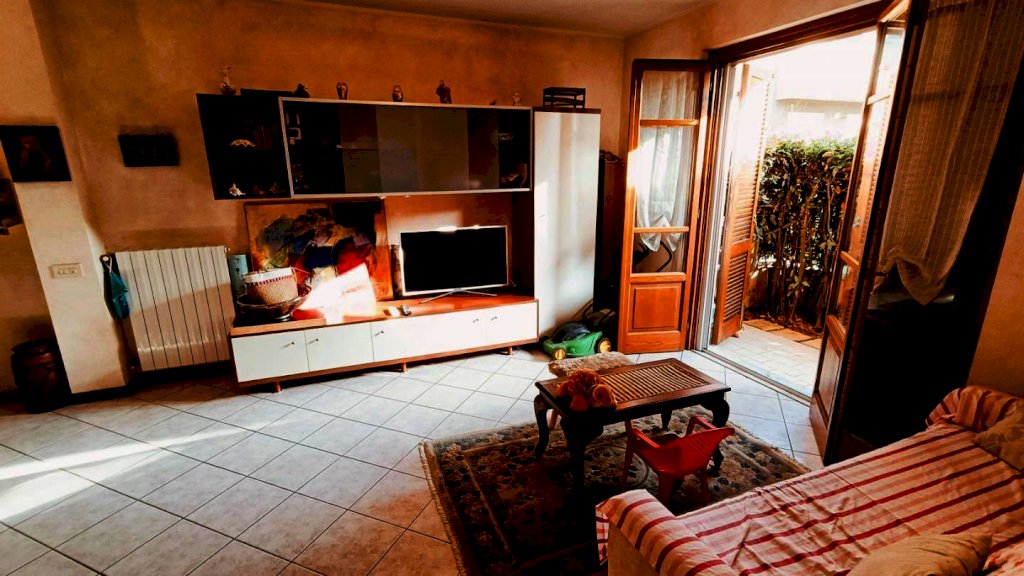 MARINA DI MASSA - A soli 500 metri dalla spiaggia ed in zona servita, si vende appartamento pari al nuovo posto al piano terra con giardino esclusivo. Internamente si compone di ingresso, luminoso soggiorno con angolo cottura, disimpegno, camera matrimoniale, cameretta e bagno con doccia finestrato. A corredo ampio garage, posto auto e cantina. L'immobile viene ceduto completo di arredamento. Aria condizionata.