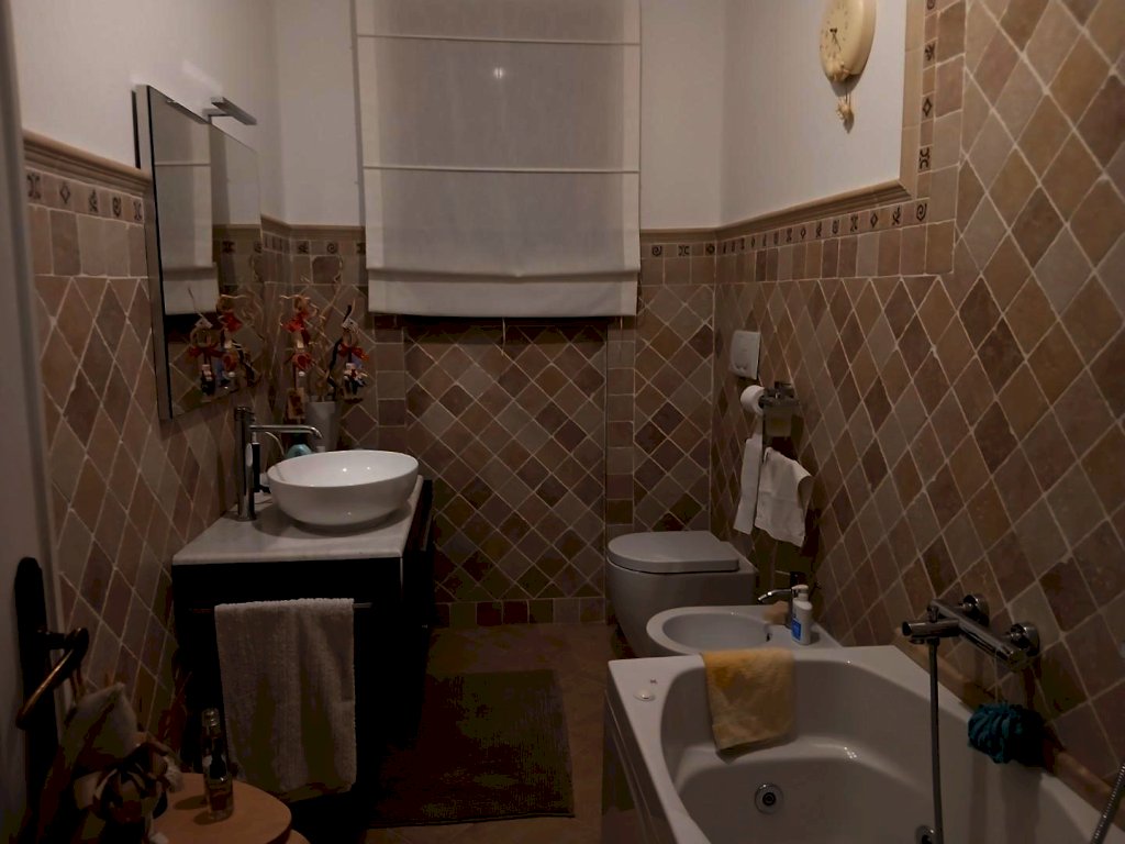Bagno completamente ristrutturato a nuovo, con finiture moderne e vasca idromassaggio.