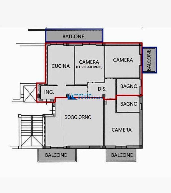 •Due camere matrimoniali, tutte con accesso a balcone (una puo’ essere collegata alla cucina e trasformarsi in soggiorno);