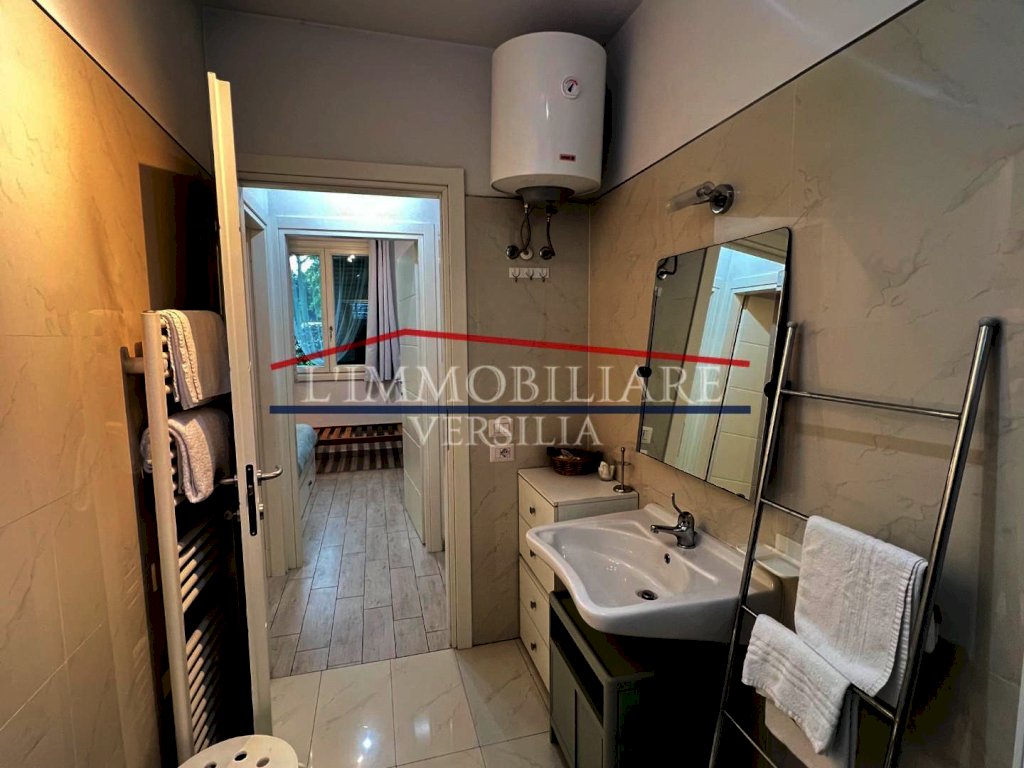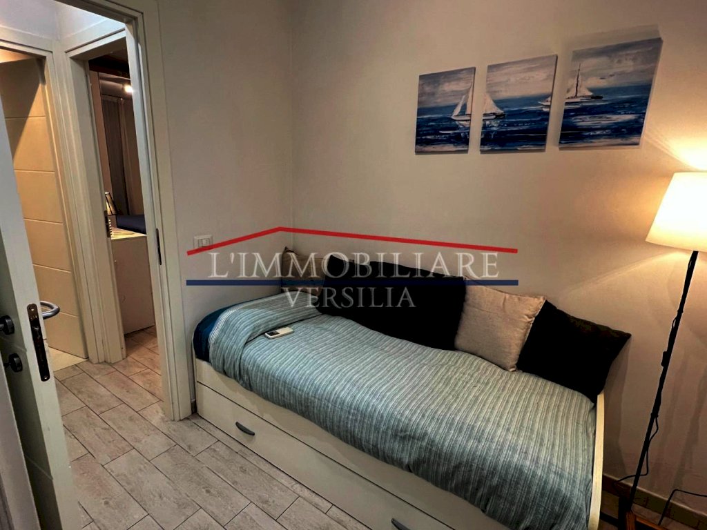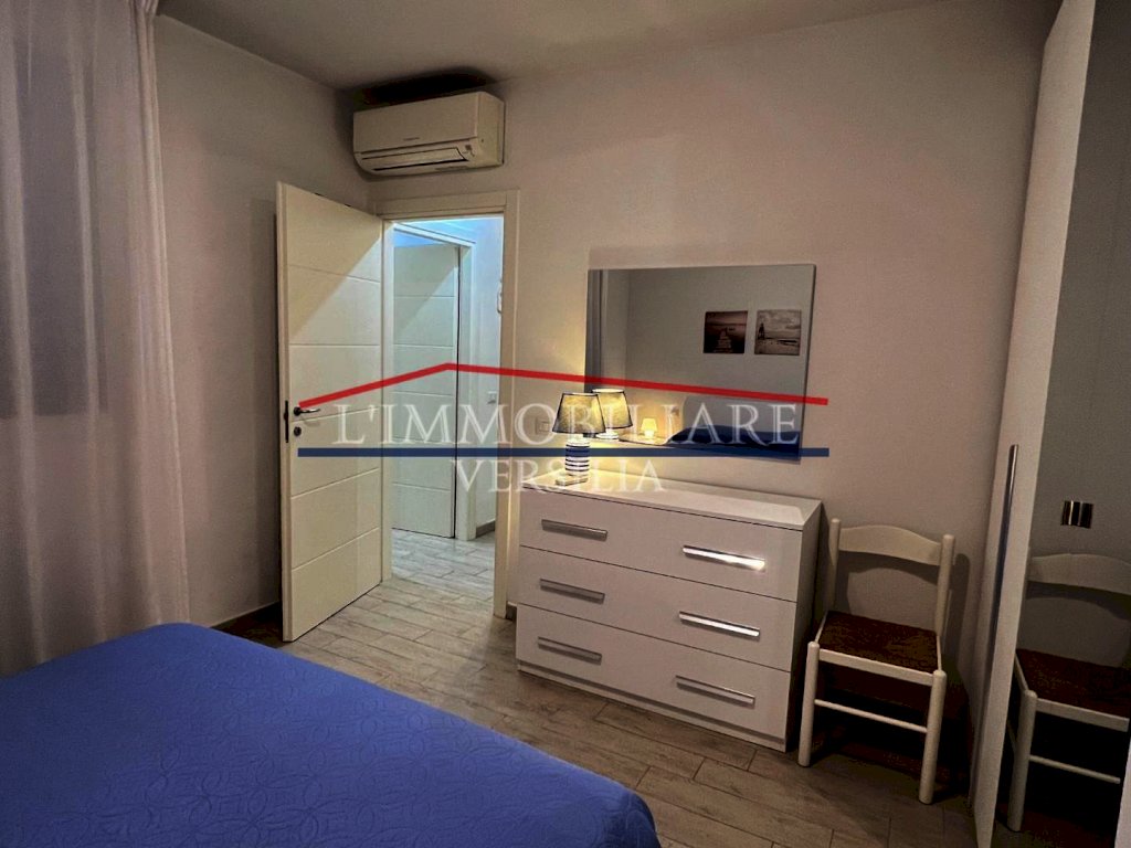 Marina di Massa località Poveromo, a soli 400 metri dalle Spiagge, Vendesi Appartamento di Recente Costruzione. Ingresso su Soggiorno Open Space con Angolo Cottura e Accesso al GIARDINO PRIVATO CON VERANDA IDEALE PER PRANZI/CENE ALL' APERTO e con Piccolo Angolo Lavanderia, Camera Matrimoniale, Cameretta, Bagno con Doccia. Ampia Cantina nel Piano Seminterrato con Accesso Tramite Scale e Ascensore (per biciclette); Parcheggio Scoperto in Area Condominiale Recintata e con Cancello Elettrico. Condizionatori Caldo/Freddo/Deumidificatore. Viene Ceduto FINEMENTE ARREDATO come da Foto.