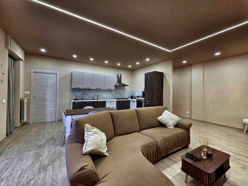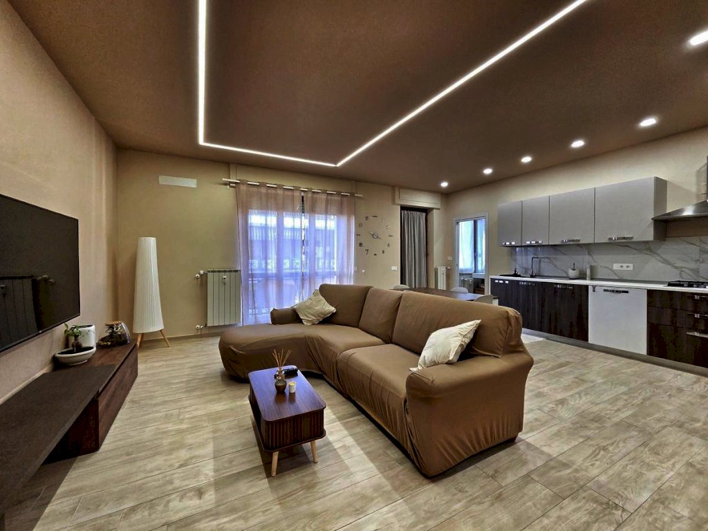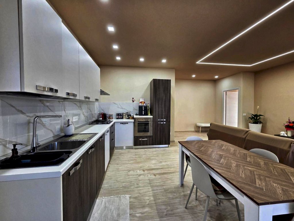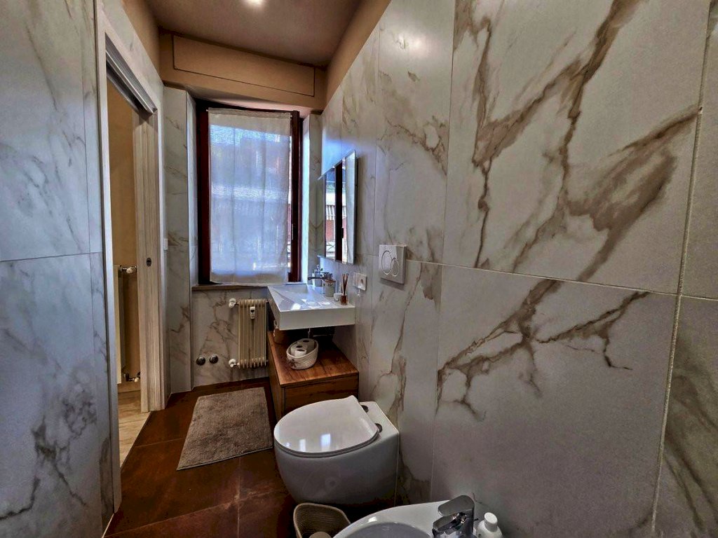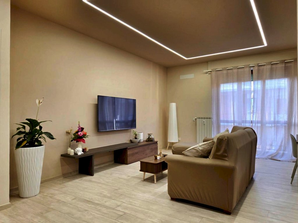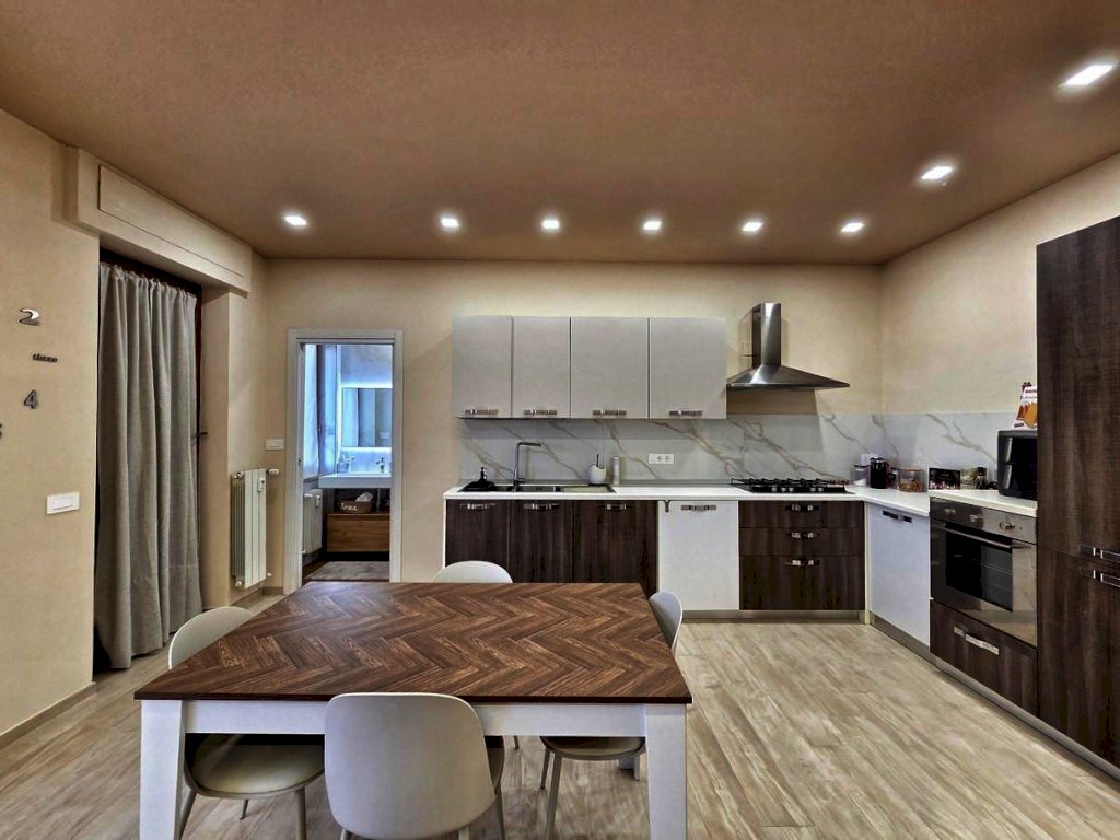 L'appartamento, posto al quarto piano, è stato ristrutturato nel 2025 ed offre uno spazio abitativo luminoso e razionale. L'ingresso tradizionale cela in maniera sapiente, svelandolo solo a chi viene accolto in casa, l'ampio soggiorno che si fonde con eleganza alla funzionale cucina a vista, spaziosissimo ambiente prospiciente il luminoso balcone e il comodo bagno, completo di doccia e finestra; il disimpegno notte, arricchito da un pratico ripostiglio e da una funzionale armadiatura a muro, conduce alle due camere da letto — di cui una servita da balcone — e al secondo bagno finestrato con doccia.