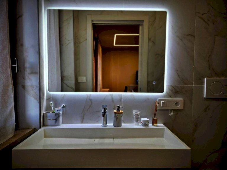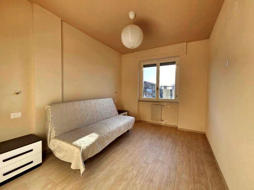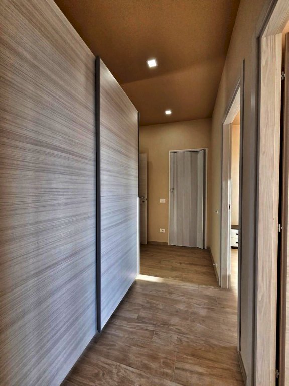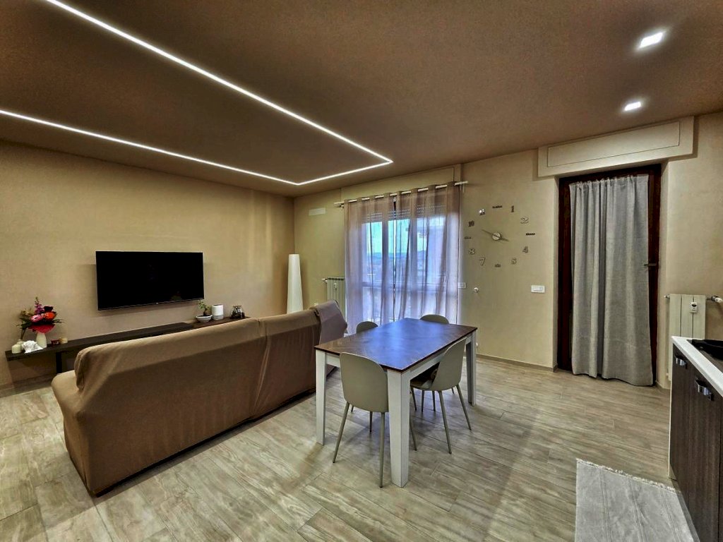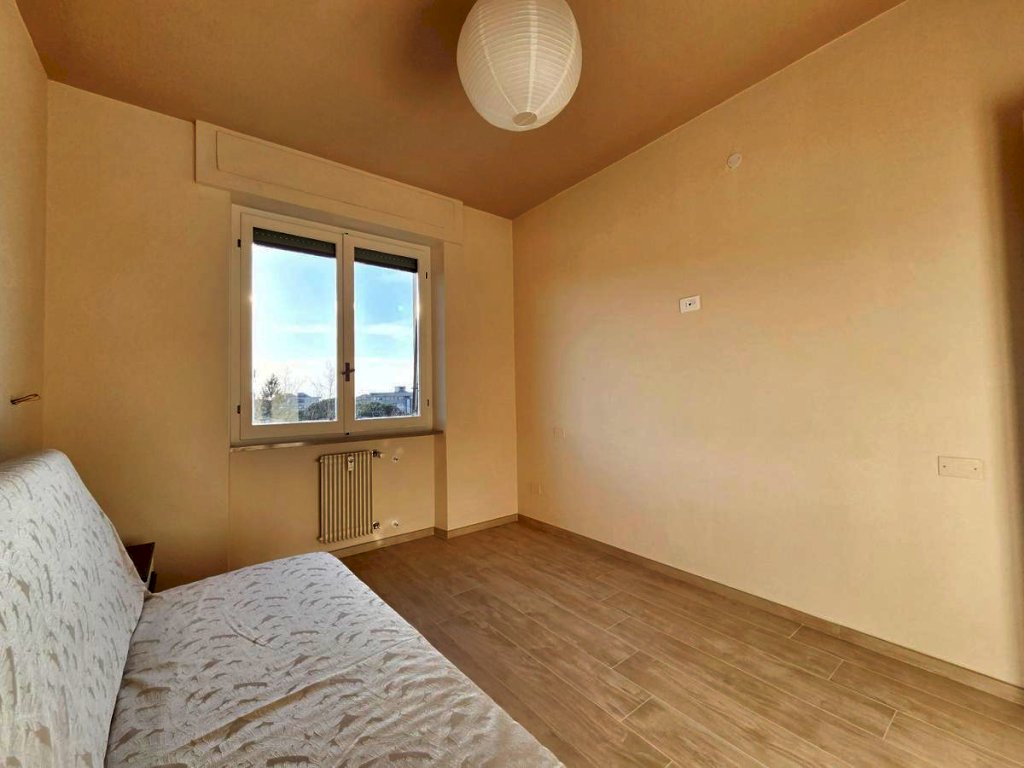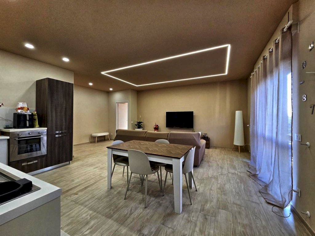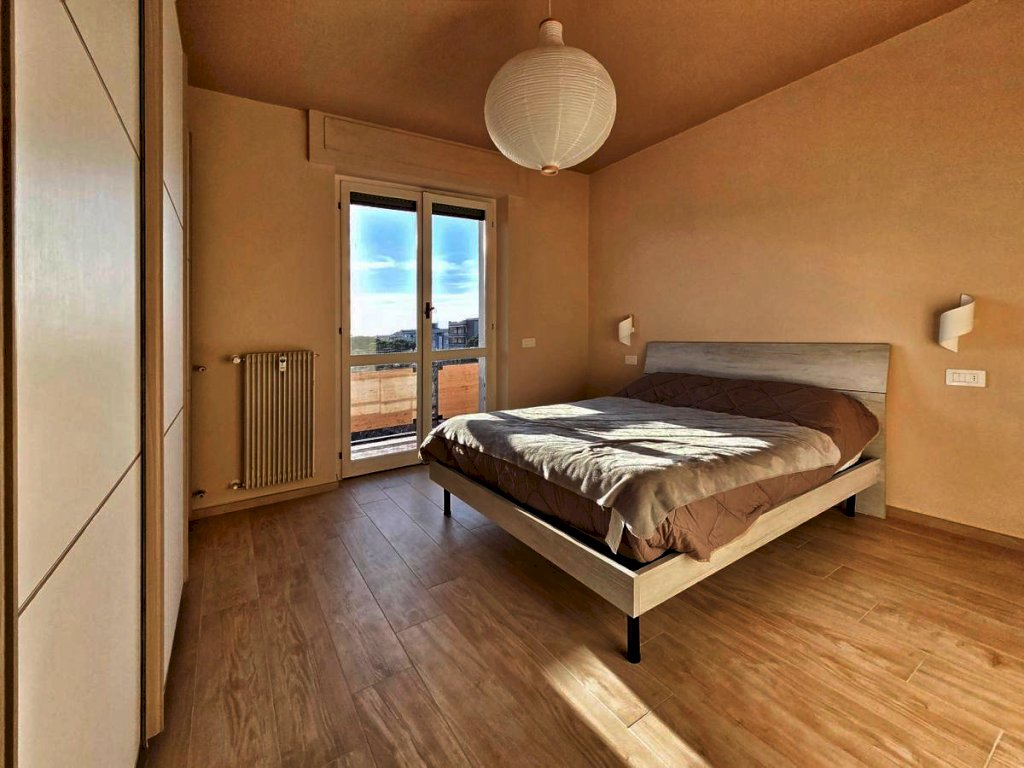 L'appartamento, posto al quarto piano, è stato ristrutturato nel 2025 ed offre uno spazio abitativo luminoso e razionale. L'ingresso tradizionale cela in maniera sapiente, svelandolo solo a chi viene accolto in casa, l'ampio soggiorno che si fonde con eleganza alla funzionale cucina a vista, spaziosissimo ambiente prospiciente il luminoso balcone e il comodo bagno, completo di doccia e finestra; il disimpegno notte, arricchito da un pratico ripostiglio e da una funzionale armadiatura a muro, conduce alle due camere da letto — di cui una servita da balcone — e al secondo bagno finestrato con doccia.