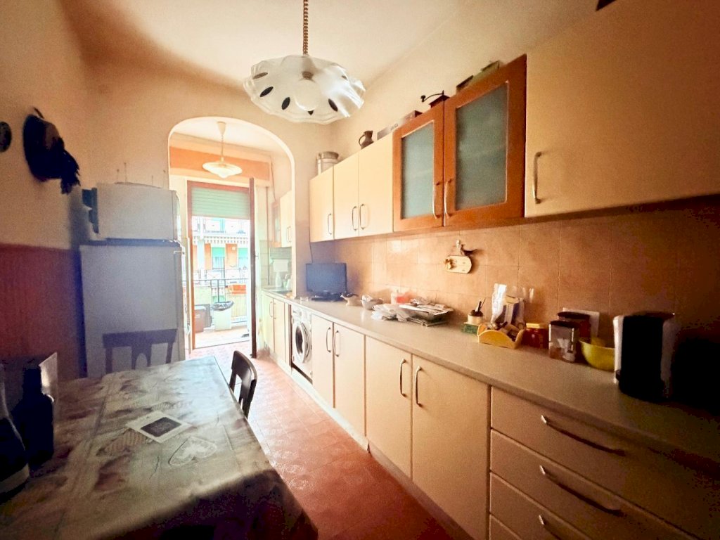 L’immobile, di taglio tradizionale, presenta ambienti ampi e ben distribuiti. L’ingresso è spazioso e conduce alla cucina abitabile con balcone e a un soggiorno di generose dimensioni. Un grande disimpegno notte con ripostiglio separa in modo funzionale la zona giorno dalla zona notte, composta da camera matrimoniale, camera doppia e bagno recentemente ristrutturato.