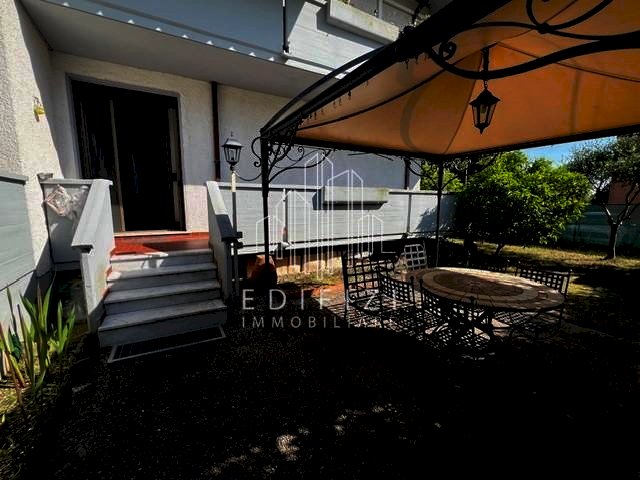 Massa, Località Quercioli, Vendesi Appartamento con Giardino Privato. Ingresso su Soggiorno, Cucinotto e Accesso al Terrazzo Perimetrale e al Giardino. Disimpegno Zona Notte Composta da Camera Matrimoniale con Accesso al Terrazzo Perimetrale e al Giardino, Camera Singola e Bagno con Vasca e Finestra. Giardino Privato di 104mq. Al piano Seminterrato Cantina con Accesso tramite Scivolo per Biciclette e Scouter. Un Parcheggio Assegnato in Area Condominiale. Tapparelle Nuove Installate Recentemente. Termoautonomo.
