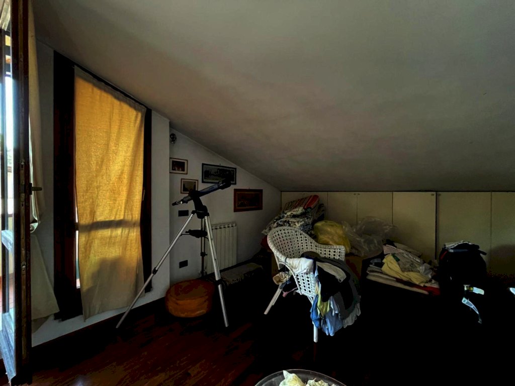 soggiorno con cucinotto separato e terrazza, disimpegno, camera con terrazza, cameretta e due bagni a piano primo; ampio locale open space con bagno e terrazza coperta al piano sottotetto.