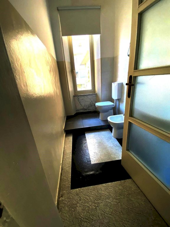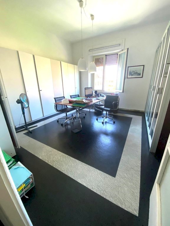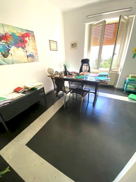 Massa, in centro, appartamento posto al piano secondo, senza ascensore, con due ampi vani nel sottotetto e terrazza. Attualmente utilizzato come ufficio, si può ricavare il secondo bagno con una modifica semplice. Internamente si compone di ingresso, sala, cucina, tre camere, bagno al piano secondo e balcone ; due locali con terrazza al piano terzo (soffitta).