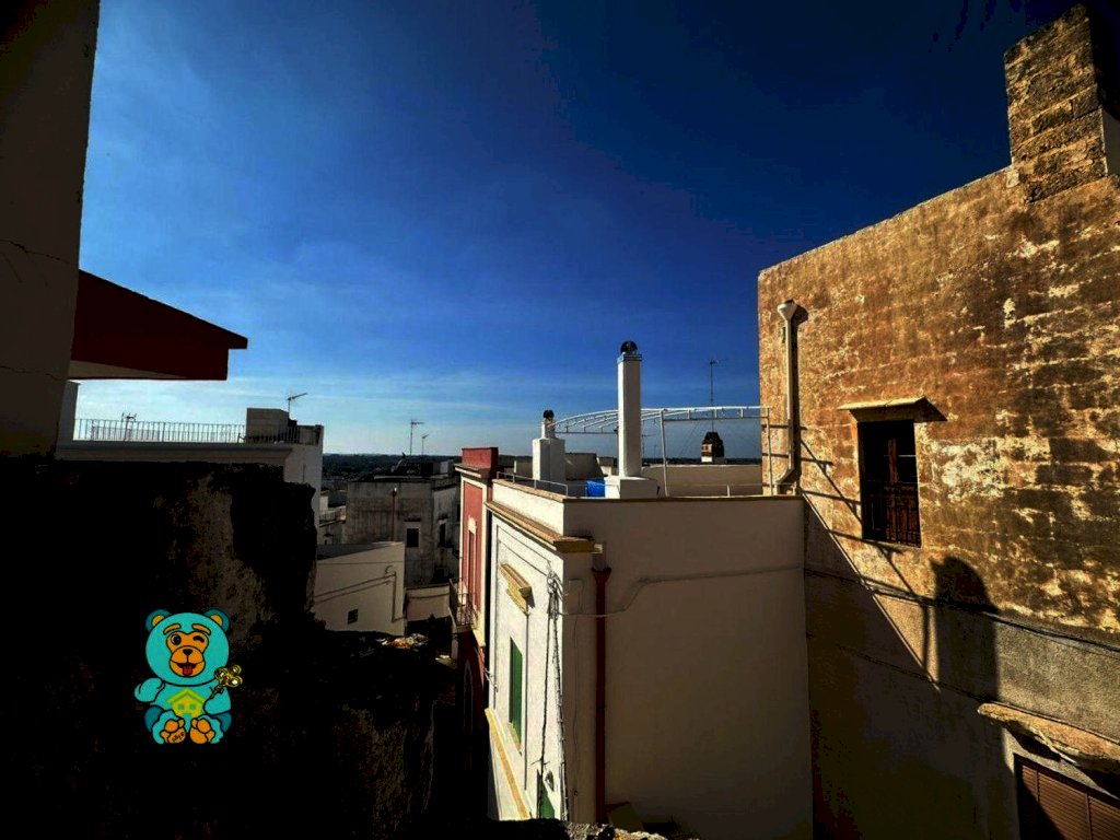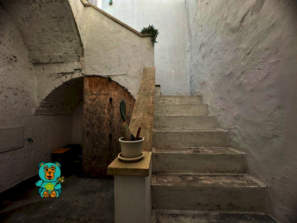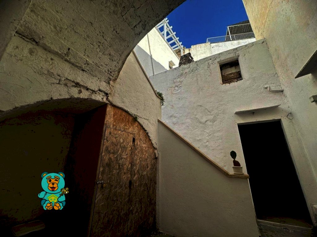 L'appartamento ha una disposizione degli ambienti davvero unica ed originale. Al piano terra, entrando in un cortile comune, troviamo una stanza di 22 mq circa con volta a stella e camino; salendo da una scala esterna in pietra, troviamo altri due ambienti di 33 mq circa con terrazzo a livello, vista mare e area solare di proprietà.