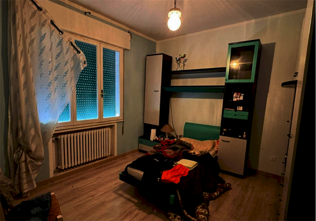 Appartamento al piano primo con annesso magazzino situato a Megliadino San Vitale (PD) in via Bosco Alto, composto da un ingresso, una cucina, corridoio, sei camere da letto, due servizi igienici, una sala ed un disimpegno. Il magazzino-deposito al piano terra di 165 metri quadri, raggiungibile da porte e portoni esterni, oppure da collegamento interno dalla cucina del bar, ha struttura portante in muratura.