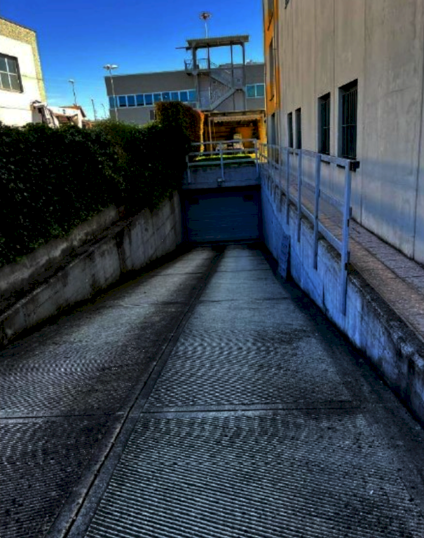 -Laboratorio artigianale con magazzino, ripostiglio e montacarichi al piano primo sottostrada; magazzino, tettoia, vano scala, montacarichi ed area esterna di pertinenza su cui insiste un immobile composto da piano terra con laboratorio, ufficio, servizi igienici, vano scala e montacarichi al piano primo, a cui si accede anche tramite scala esterna; oltre a due posti auto coperti di 13mq e 14mq al piano primo sottostrada.