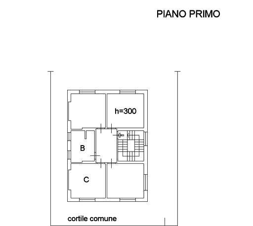 Unità al piano primo di un edificio residenziale; composta da tre locali e servizi, oltre a locale ad uso magazzino posto al piano seminterrato.