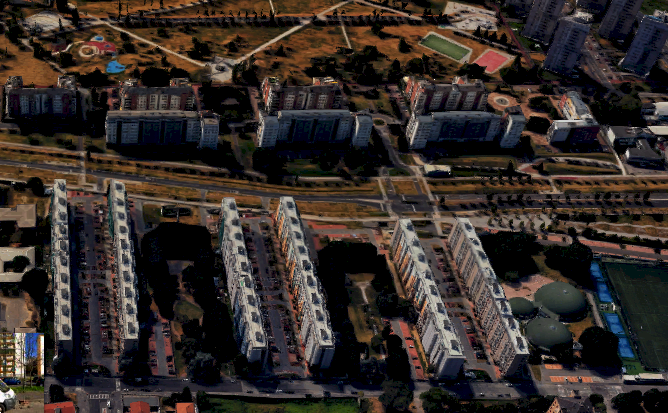 Appartamento situato al piano sesto di un ampio palazzo residenziale con ascensore; dispone di quattro ampi locali, cucina e doppi servizi al piano sesto con annessa cantina al piano secondo interrato, con due boxes ad uso autorimessa pertinenziali all'appartamento siti al piano secondo interrato
