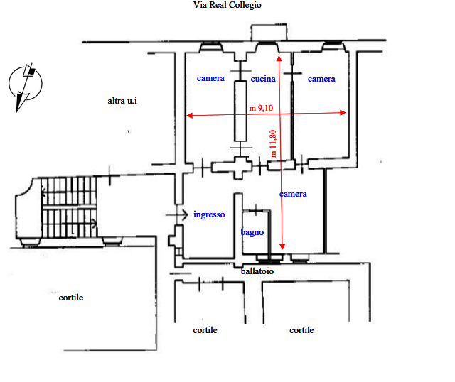 Appartamento posto al piano secondo in un edificio condominiale, ubicato nel comune di Moncalieri (TO) in Via Real Collegio. L'alloggio è composto da cucina, tre camere, oltre ad un ampio ingresso, il vano dei servizi igienici e un disimpegno.