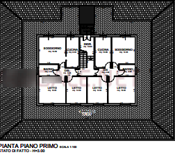 E' composto da ingresso con due cucine, due soggiorni, due bagni, quattro camere, due disimpegni e un terrazzo. Per raggiungere la soffitta l'accesso avviene tramite scala interna.