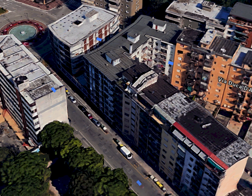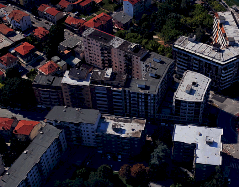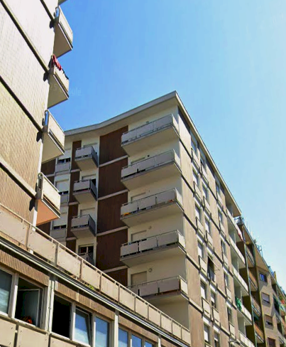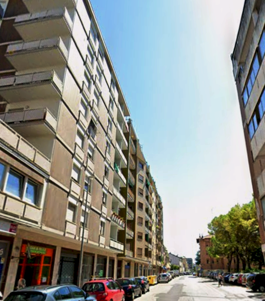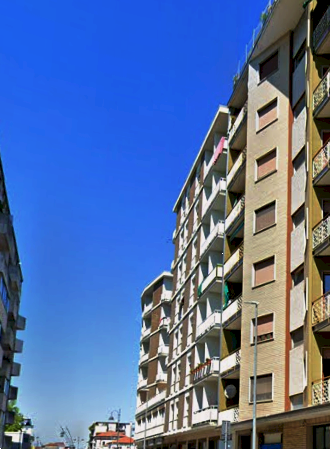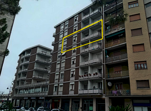 Appartamento posto al piano quinto in un edificio condominiale, dotato di ascensore, ubicato nel comune di Monfalcone (GO) in Via Giuseppe Garibaldi. L'alloggio è composto da due atri, due w.c.-bagno, quattto stanze, delle quali una con un vano, una cucina, un disimpegno, due npostigli e tre poggioli. Per completare l'immobile troviamo una cantina.