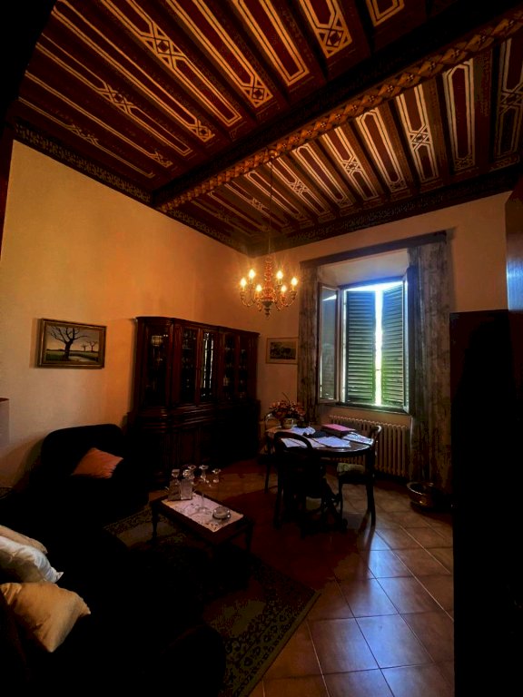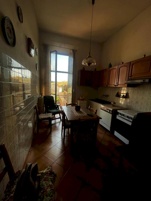 Dentro al paese di Torrenieri all’interno di un bel palazzo con ingresso signorile da ampia scala in travertino appartamento al primo piano con soffitti a travi con decori, ingresso nel disimpegno, cucina abitabile con terrazzo, soggiorno, camera matrimoniale con piccolo terrazzo, cameretta,ripostiglio e bagno finestrato, al piano terreno magazzino e cantina nel seminterrato.