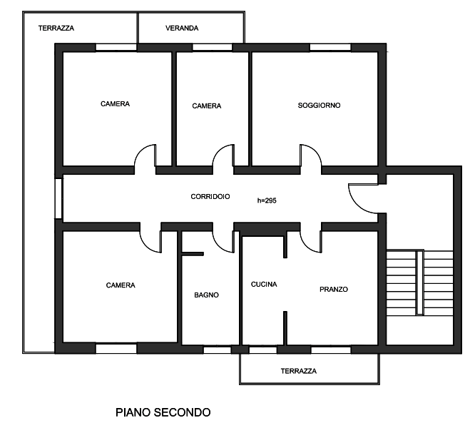 Trattasi di appartamento al piano secondo composto da corridoio distributivo, tre camere, zona pranzo con cucina parzialmente separata, area soggiorno e un bagno finestrato nonché terrazza di mq30.