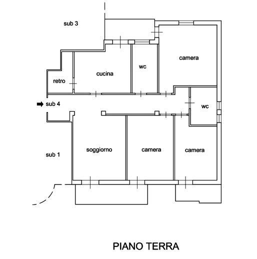Al piano terra è composta da: ingresso, cucina, soggiorno, disimpegno