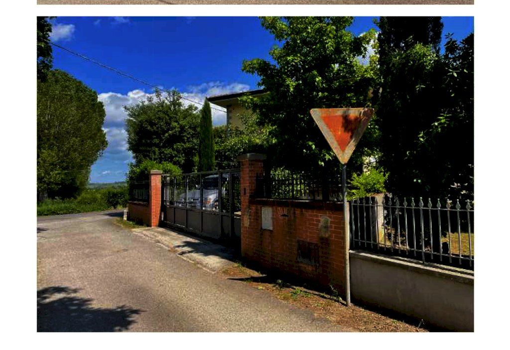 Porzione di fabbricato abitativo, di civile abitazione, con autorimessa, zona giorno al piano terreno formata da ampio soggiorno, vano cucina, entrambi con caminetto, bagno e locale ad uso ripostiglio; zona notte al piano primo, formata da n. 3 camere e n. 2 bagni di cui uno a servizio esclusivo della camera matrimoniale. Il fabbricato è dotato di resede esclusivo che si sviluppa principalmente nella zona antistante l'ingresso.