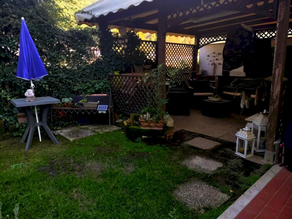 MONTIGNOSO: nella zona di Renella, in piccolo ed elegante condominio, vendesi appartamento al piano terra rialzato, tenuto perfettamente, con tripla esposizione ed ingresso indipendente. L'appartamento edificato nel 2008, si compone di: ingresso su soggiorno pranzo, cucinotto separato, disimpegno, camera matrimoniale, camera doppia, bagno finestrato con doccia, giardino con ampio gazebo per cene in famiglia e posto auto. A corredo allarme e aria condizionata. Da vedere.