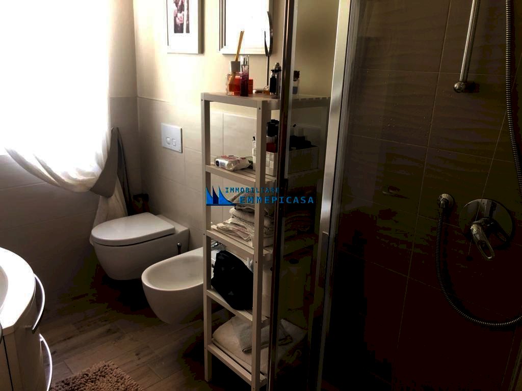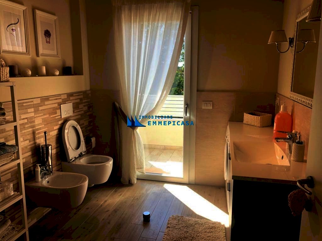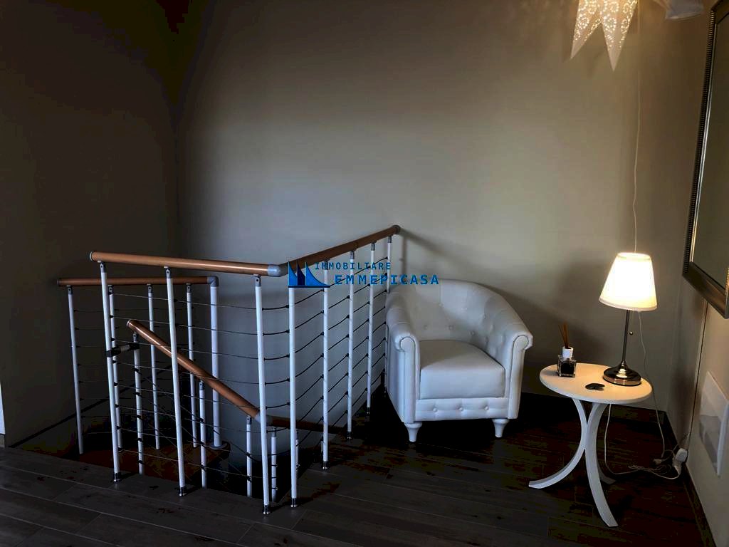 Cinquale - Montignoso. A circa 1 km dal mare si vende bellissimo appartamento posto al primo piano oltre sottotetto di piccola palazzina di recente costruzione composta da sole 6 unità immobiliari. Si compone di ingresso, soggiorno, zona pranzo con angolo cottura e accesso ad ampia terrazza ideale per pranzi all'aperto, disimpegno, camera matrimoniale e bagno con doccia a piano primo; Ampio vano mansardato ad uso camera e salotto, ripostiglio e bagno con balcone a piano sottotetto. Possibilità di frazionare il sottotetto e ricavare la terza camera. Venduto semiarredato. Classe energetica: A3 - Rif. H495. Prezzo leggermente trattabile