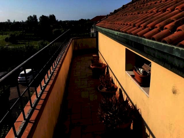 Montignoso, loc. Renella, a circa 3 km dal mare, appartamento mansardato (di civile abitazione) posto al secondo ed ultimo piano e composto da: ingresso, ampio soggiorno/pranzo con accesso a terrazzina pranzabile, cucina a vista, disimpegno, 1 camera matrimoniale con 1 bagno interno, 1 camera doppia e 1 altro bagno con vasca. Climatizzato. Fa parte della proprietà anche una cantina al piano seminterrato e due posti auto in parcheggio condominiale. OTTIMO SIA COME APPOGGIO MARE CHE COME CASA RESIDENZIALE