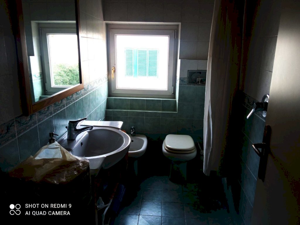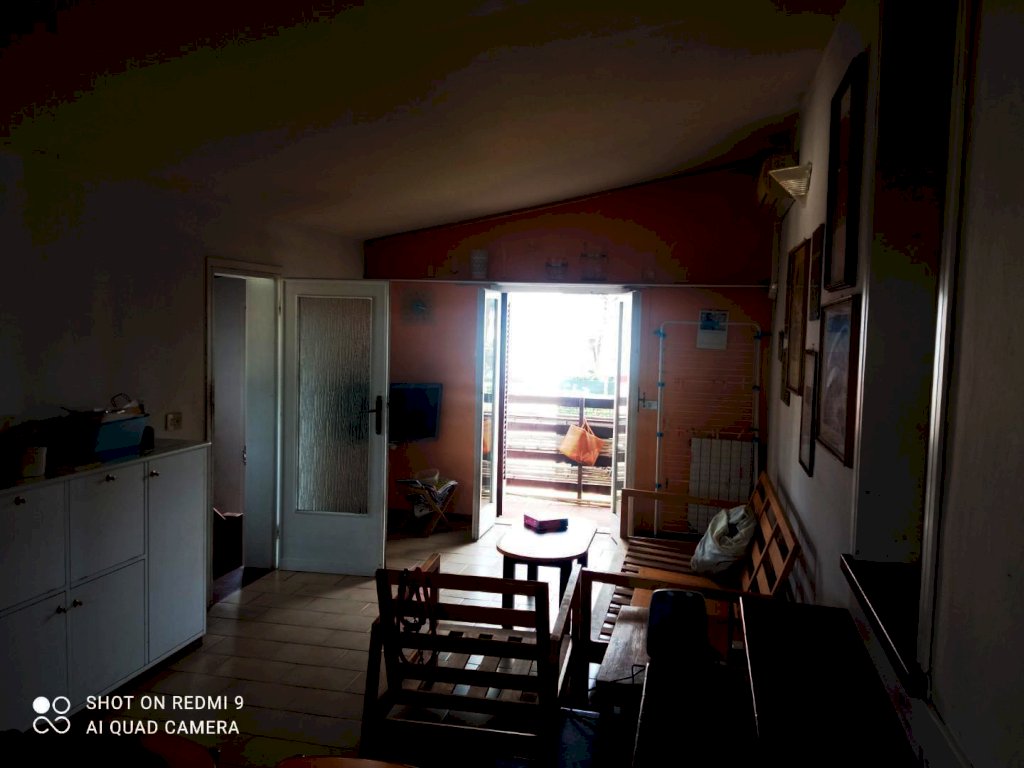 Cinquale, a circa 800 metri dal mare appartamento al piano primo in bifamiliare di 100 mq. circa composto da: ingresso, cucinotto, soggiorno con balcone, 3 camere, 2 bagni entrambi finestrati e ripostiglio. L'immobile necessita di qualche lavoro di riordino. Esposizione unica e libera su tutti i lati.