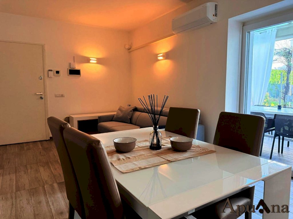 CINQUALE - A circa 1500 metri dal mare, in una zona residenziale elegante e tranquilla, sorge questo grazioso appartamento posto al piano terra di una palazzina quadrifamiliare di recente costruzione, caratterizzata da linee moderne e armoniose e da un contesto curato e riservato. L’abitazione, pari al nuovo, si distingue per la qualità delle finiture, la funzionalità degli spazi e l’atmosfera accogliente che la rende perfetta sia come residenza principale sia come raffinata casa per le vacanze. L’ingresso introduce in un ampio soggiorno con zona pranzo, luminoso e ben proporzionato, dove la grande portafinestra permette di accedere a una splendida veranda coperta, ideale per pranzare all’aperto o rilassarsi durante le giornate estive. L’angolo cottura è comodo e discreto, perfettamente integrato nel living e pensato per offrire praticità e armonia estetica. La zona notte è composta da una camera matrimoniale con accesso diretto a un grazioso giardinetto privato, da una seconda camera doppia e da un bagno finestrato con doccia, curato nei minimi dettagli e rifinito con materiali di ottima qualità. All’esterno si estende un giardino esclusivo che circonda l’abitazione su due lati, arricchito da spazi verdi ben curati e da zone coperte dove poter trascorrere piacevoli momenti all’aperto. Un comodo vano tecnico/lavanderia contribuisce alla praticità dell’abitazione, offrendo ulteriore spazio di servizio. L’appartamento è dotato di riscaldamento a pavimento, impianto di climatizzazione e sistema d’allarme, garantendo il massimo comfort abitativo in ogni stagione e un alto livello di sicurezza. La classe energetica A+ assicura un’eccellente efficienza, con consumi contenuti e attenzione alla sostenibilità. Due posti auto di proprietà sono collocati all’interno dell’area condominiale, riservata e facilmente accessibile. I dati tecnici dell'immobile, riportati nell'annuncio, sono da ritenersi puramente indicativi, in riferimento ai metri quadri e/o altro, pertanto si rimanda alla documentazione catastale. Si precisa ai signori clienti che gli indirizzi inseriti all'interno degli annunci sono puramente indicativi e vogliono solo essere un utile ausilio nell'individuazione della zona ove è ubicato l'immobile.