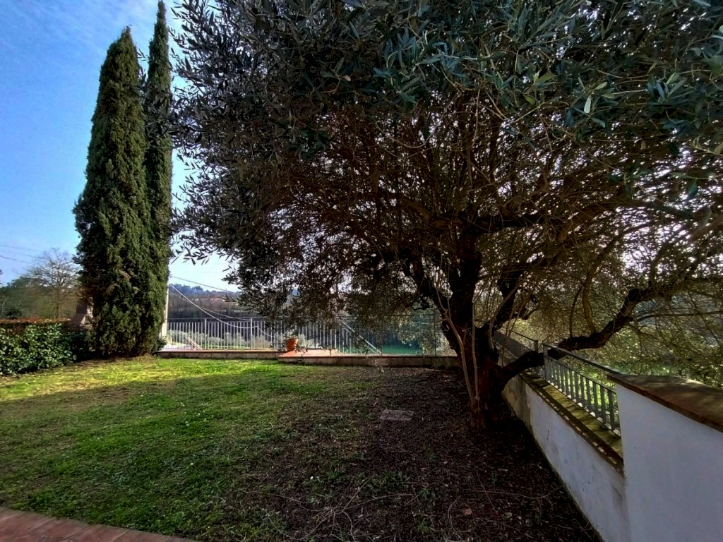 Montopoli in val d'Arno-Marti, località Musciano- In Esclusiva, appartamento indipendente piano terra laterale, posizione panoramica con esposizione a sud, composto da loggia di ingresso, grande e luminoso soggiorno, cucina, disimpegno notte, camera matrimoniale con bagno privato, altro bagno e camera singola. Completano la proprietà giardino e resede privato sui tre lati per circa 250 m.q. , oltre a un ampio garage staccato. Belle finiture. Libero.