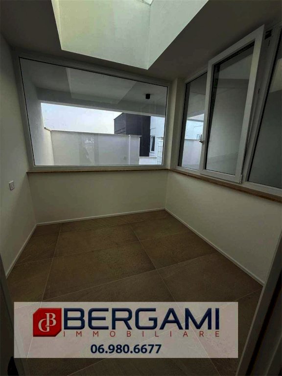L'attico è composto da soggiorno, angolo cottura, due camere da letto, serra bioclimatica, un bagno con doccia, due terrazzi, posto auto scoperto.