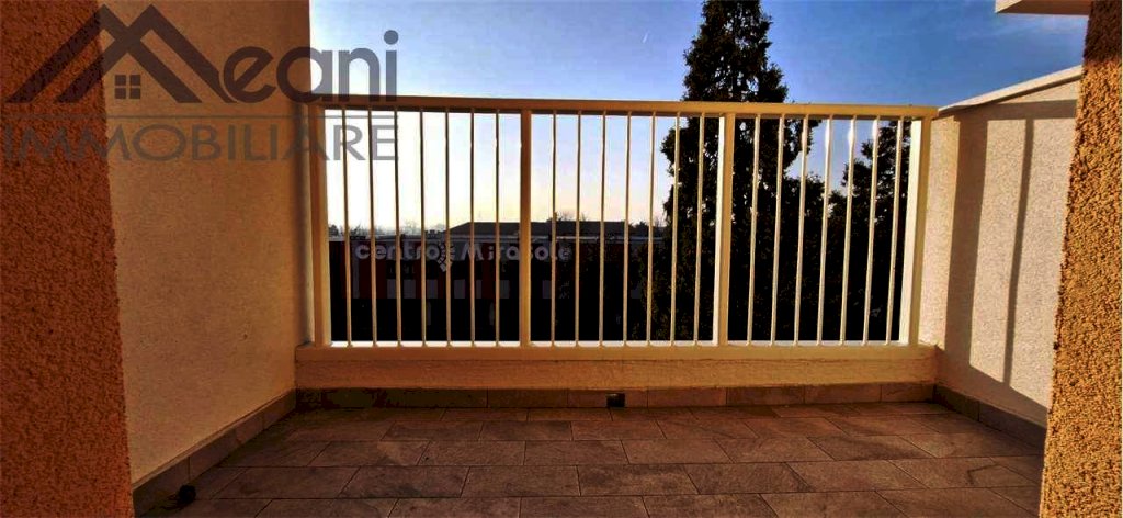 L'appartamento di 141 mq.ca. è composto da: ingresso, ripostiglio, cucina abitabile con locale lavanderia e balcone, soggiorno con terrazzo, bagno di servizio con doccia, bagno principale con vasca, 2 camere matrimoniali con cabina armadio e cameretta con armadio a muro.