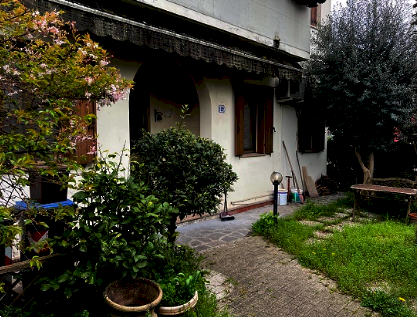 Appartamento al piano terra con cortile esclusivo ed annesso garage facente parte di un fabbricato condominiale situato a Padova (PD) in via Fornaci, composto da un ingresso, una cucina-sala da pranzo, corridoio, due bagni, due