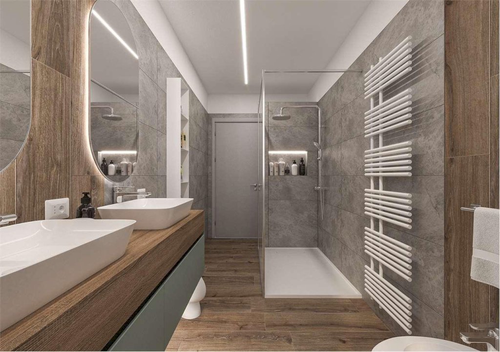 Nello specifico questa scheda si riferisce a un appartamento al piano terra con soggiorno con angolo cottura, camera master con cabina armadio e bagno en suite, altre due camere e bagno. Terrazzo esterno di 111 mq e giardino di mq 160