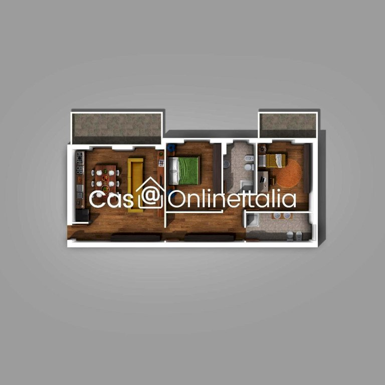 Internamente è così composto: Ingresso, ampio soggiorno con angolo cottura, disimpegno, due camere da letto, due bagni, due balconi.