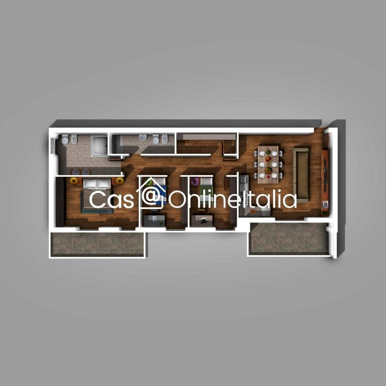 Internamente è così composto: Ingresso, ampio soggiorno con angolo cottura, disimpegno, tre camere da letto, due bagni, ripostiglio, due balconi.