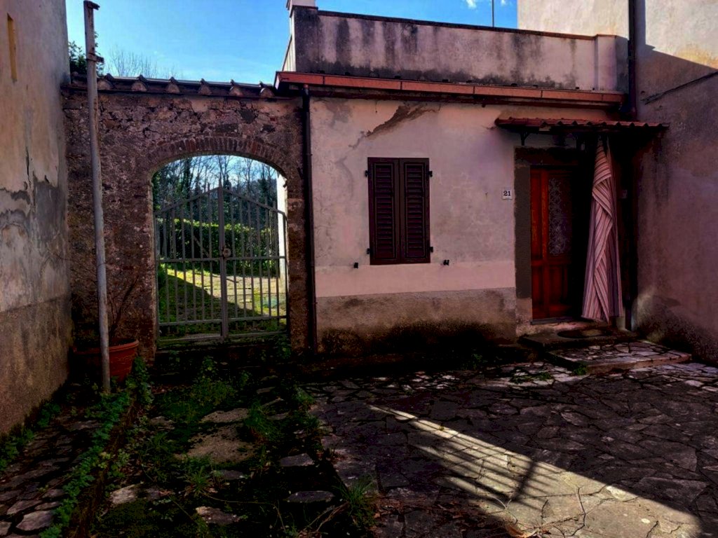 Casa di paese, facente parte di un più ampio fabbricato, in posizione assolata e corredato di grande giardino sul fronte, terrazza panoramica e terreno.