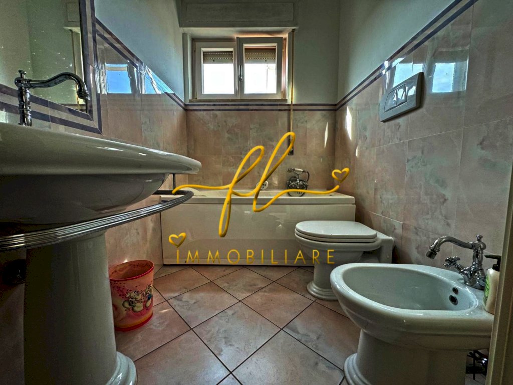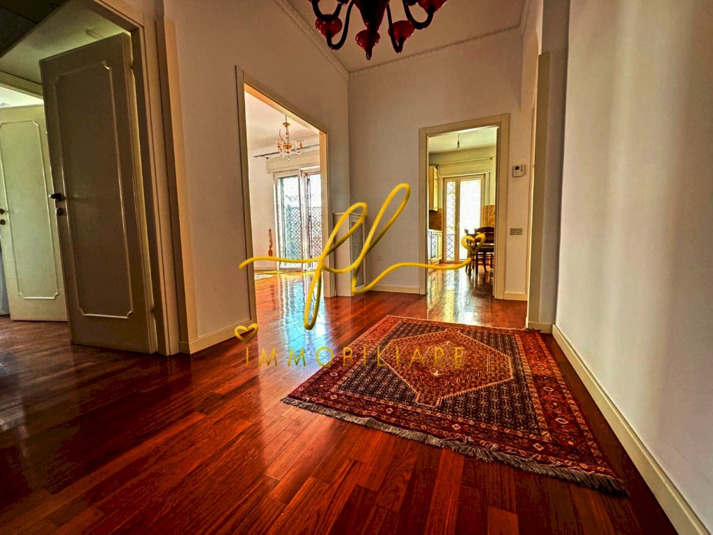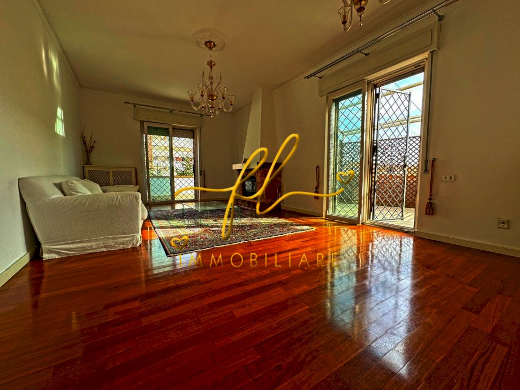 In elegante condominio con vista mare, proponiamo in vendita questo splendido e luminoso appartamento al terzo piano. L'immobile si presenta libero e offre un ingresso, cucina abitabile, salone con camino e uscita su terrazza abitabile. Dispone inoltre di tre camere matrimoniali, doppi servizi. Con una superficie di 133 m² commerciali e 125 m² calpestabili, questo appartamento è composto da 5 locali e 2 bagni, con armadi a muro e in buono stato. Completa la proprietà al piano seminterrato locale autorimessa di 16 m²